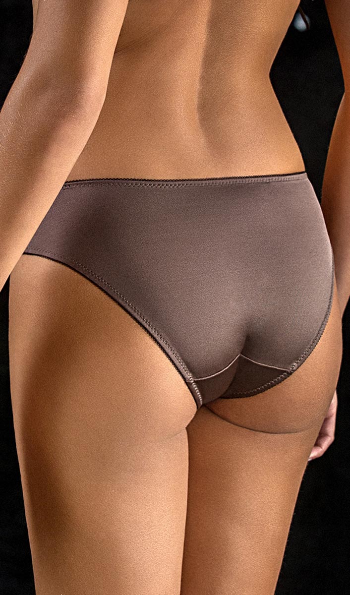 Коллекция цвета "горячий шоколад" с черным рисунком, сделанным флоком. Трусики со средней линией посадки, гладкая спинка